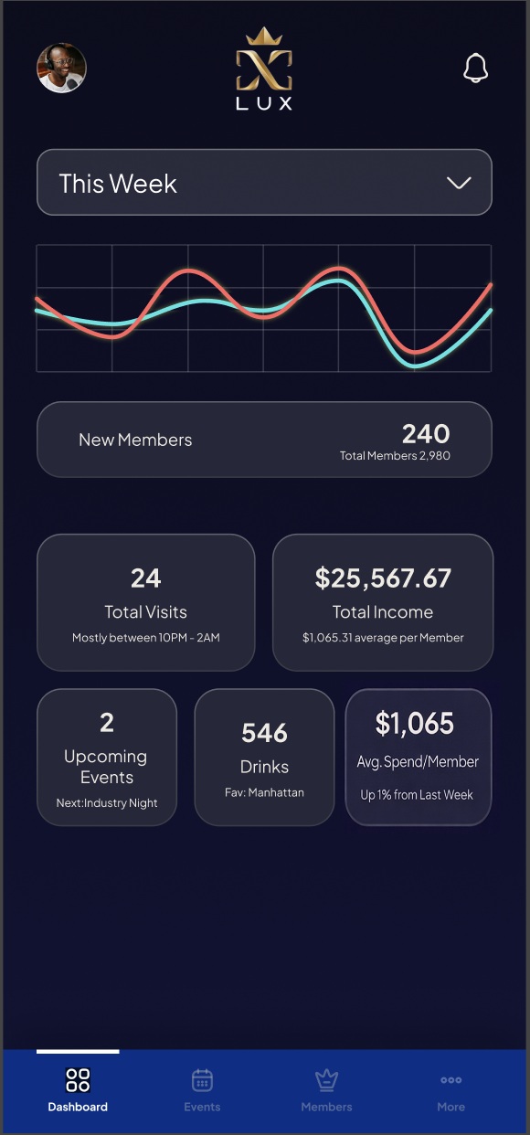 A core component of the Club Lux digital ecosystem is its QR code–based check-in system, designed to balance operational efficiency with controlled access. Members present a unique QR code displayed within their mobile app at the entrance, which staff scan using the Club Manager app. In cases where scanning is not possible, staff can manually enter the member’s unique code to complete validation.